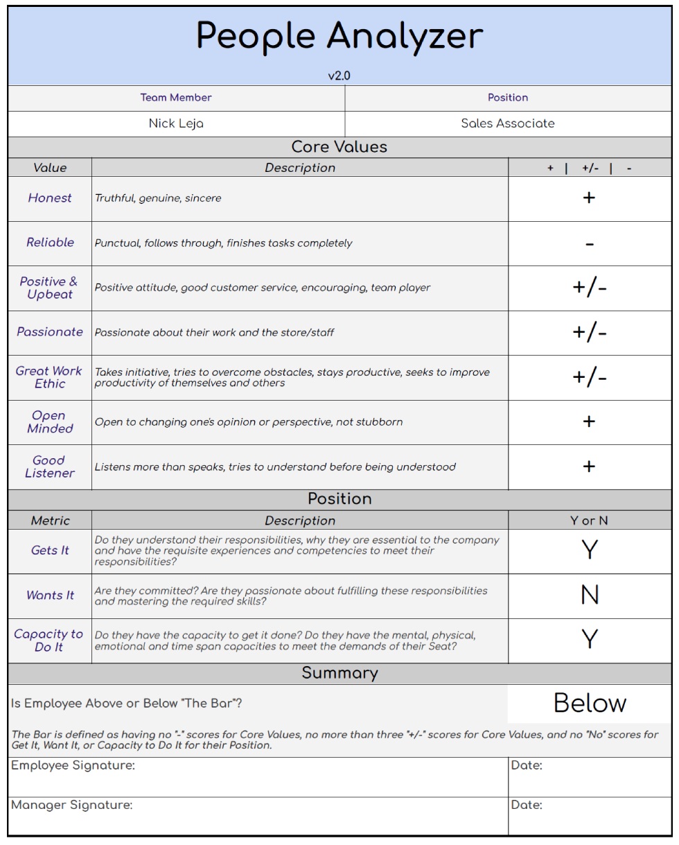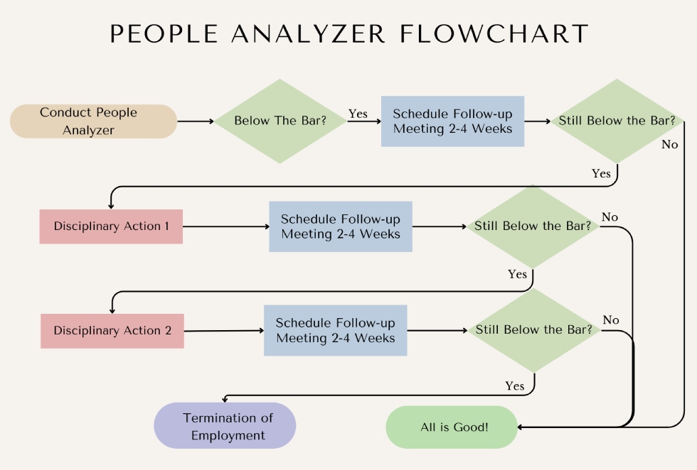 We’ve updated our handbook to identify the Core Values, the People Analyzer, The Bar, and the process to follow if someone is below The Bar. This ensures everyone understands this process and the potential outcomes of being below The Bar.